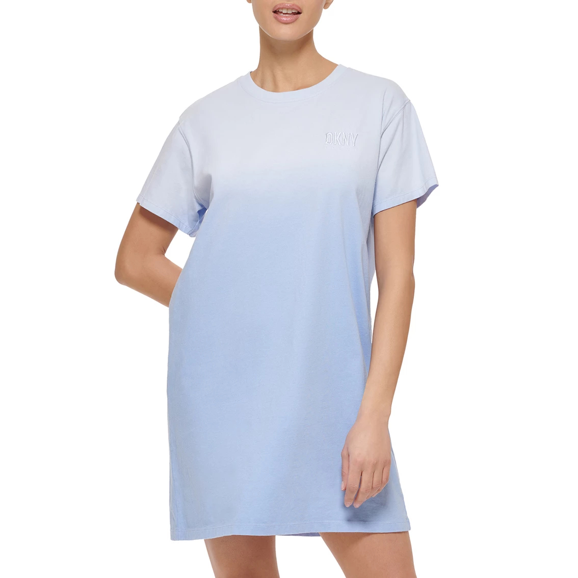 Cut for optimal comfort and endless styling options, this crewneck T-shirt dress by DKNY Sport features a fun dip dye print that effortlessly takes you through the day. This tee makes making a fashion statement very easy. Style: DP2D4590462.