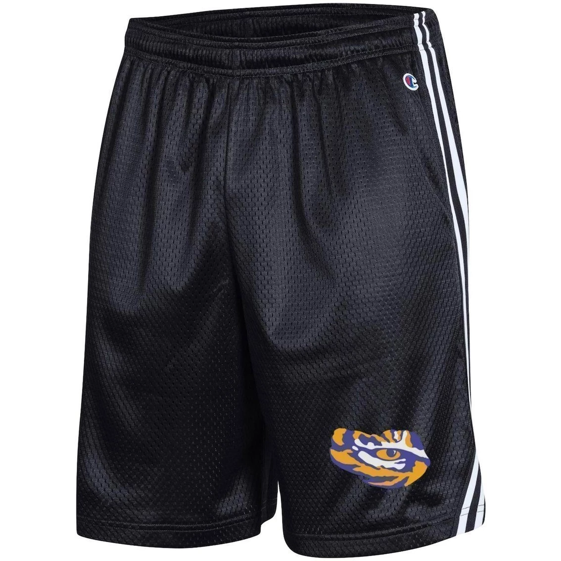 Gear up for any activity with these LSU Tigers Team Lacrosse shorts. These stylish shorts from Champion feature crisp graphics and a comfortable design. Whether enjoying the outdoors or hitting the gym, stay active with these striking LSU Tigers shorts. ImportedMachine wash, tumble dry lowOfficially licensedMesh fabricSewn-on stripe trimSplit sides at hemInseam on size M measures approx. 9”Material: 100% PolyesterScreen print graphicsTwo side pocketsElastic waistband with drawstringBrand: Champion