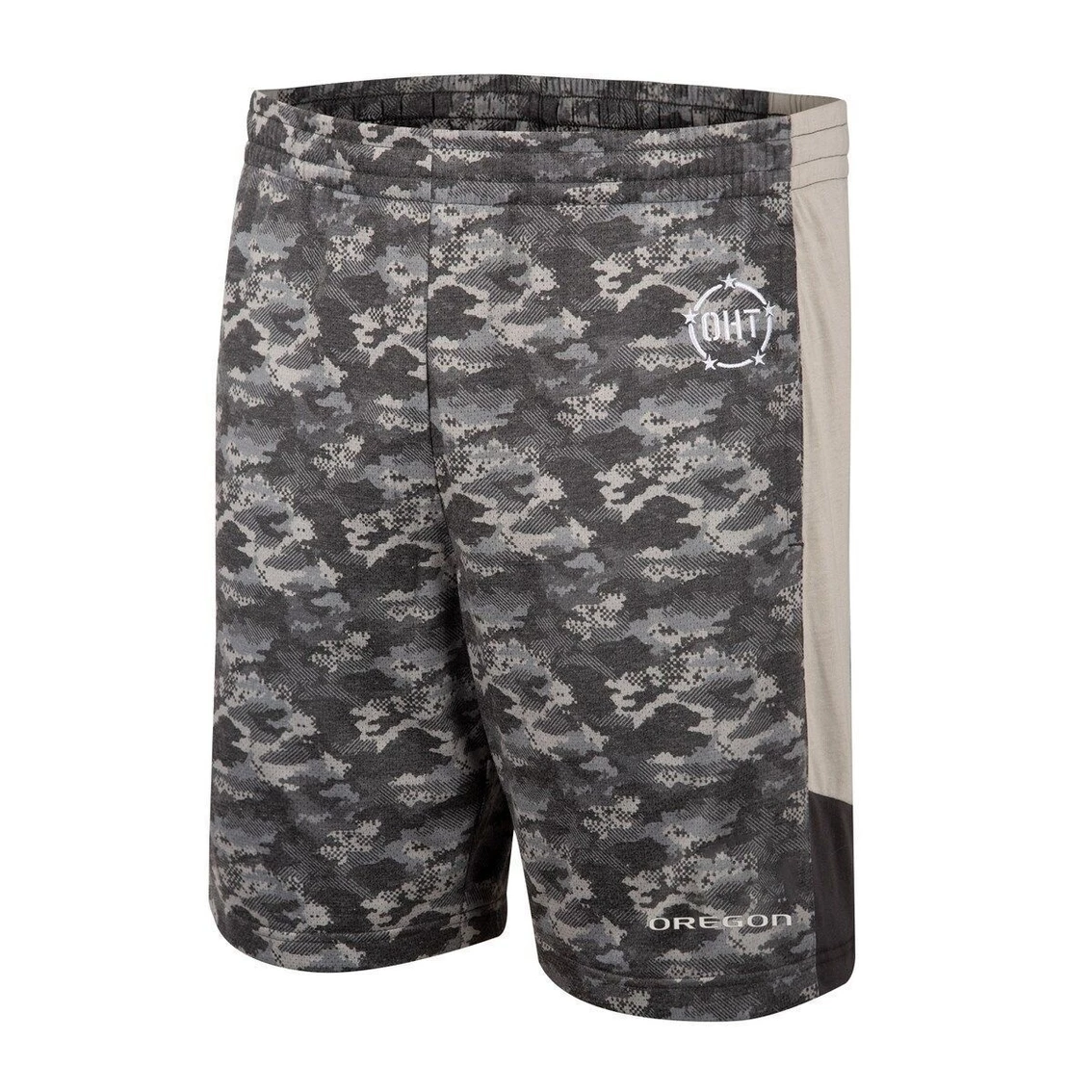 Combine your patriotic spirit with a bit of Oregon Ducks pride with these Colosseum OHT Military Appreciation Terminal shorts. Featuring an elastic waistband, these bottoms have mesh fabric that promotes breathability. The camo design and Oregon Ducks graphics pair for a dedicated look. Solid side panelsOfficially licensedMachine wash, tumble dry lowEmbroidered fabric appliqueSide slip pocketsMesh fabricInseam on size M measures approx. 8 inchesBrand: ColosseumMaterial: 85% Polyester/15% Cotton Body; 60% Polyester/40% Cotton InsertElastic waistband with drawstringSublimated camo designImportedOperation Hat Trick (OHT) generates awareness and support for the recovery of wounded service members and veterans through the sale of branded merchandise and products. Proceeds are donated to select organizations that support the OHT mission.