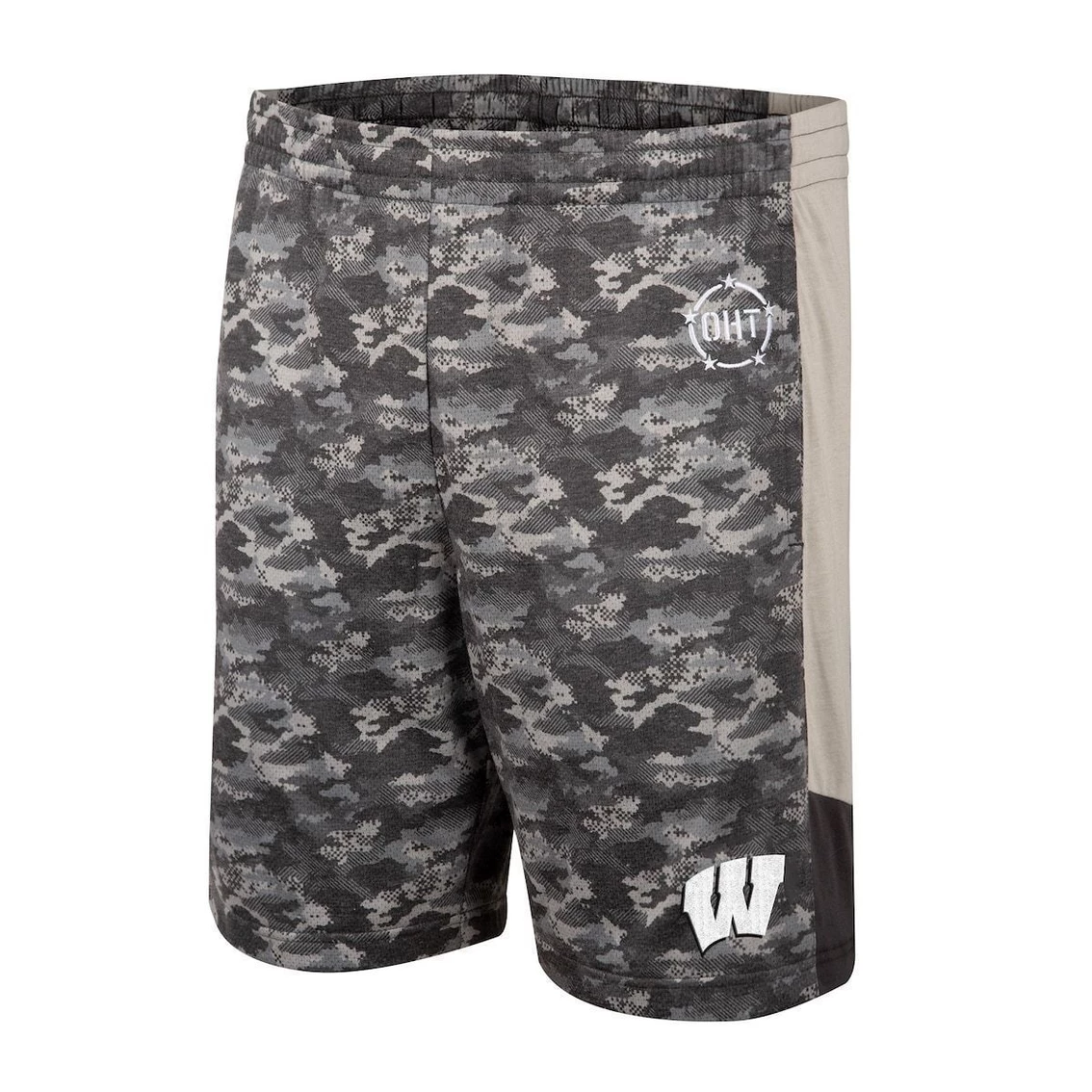 Combine your patriotic spirit with a bit of Wisconsin Badgers pride with these Colosseum OHT Military Appreciation Terminal shorts. Featuring an elastic waistband, these bottoms have mesh fabric that promotes breathability. The camo design and Wisconsin Badgers graphics pair for a dedicated look. Sublimated camo designOfficially licensedBrand: ColosseumImportedSide slip pocketsMesh fabricMaterial: 85% Polyester/15% Cotton Body; 60% Polyester/40% Cotton InsertOperation Hat Trick (OHT) generates awareness and support for the recovery of wounded service members and veterans through the sale of branded merchandise and products. Proceeds are donated to select organizations that support the OHT mission.Elastic waistbandMachine wash, tumble dry low