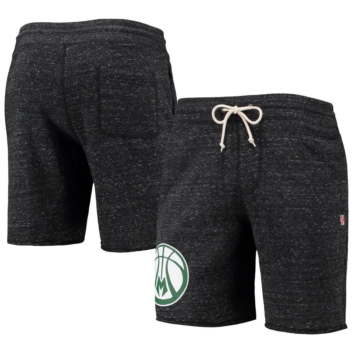 Brand new π₯ Men's Homage Charcoal Milwaukee Bucks Primary Logo Tri-Blend Sweat Shorts π