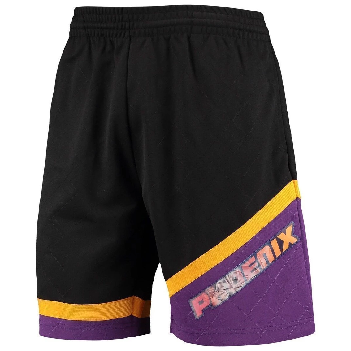 Proudly rep the Phoenix Suns with these Hardwood Classics 75th Anniversary Swingman shorts from Mitchell & Ness. The elastic waistband and two side slip pockets ensure total comfort and convenience wherever you go. Designed with throwback Phoenix Suns details and a stylish holographic applique, these shorts are a standout piece in your team collection. Machine wash, line drySublimated designTwo side slip pocketsInseam in size M measures approx. 8.5”ImportedMaterial: 100% PolyesterElastic waistband with drawstringStitched holographic applique with faux diamond patternOfficially licensedBrand: Mitchell & Ness
