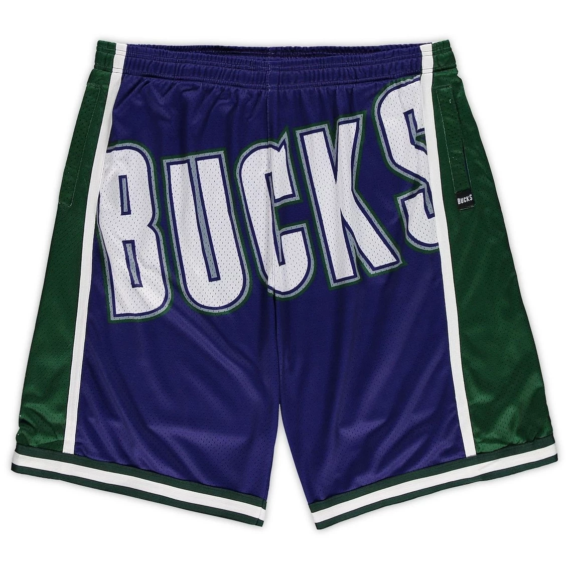 Discount π Men's Mitchell & Ness Purple Milwaukee Bucks Big & Tall Hardwood Classics Big Face 2.0 Shorts π