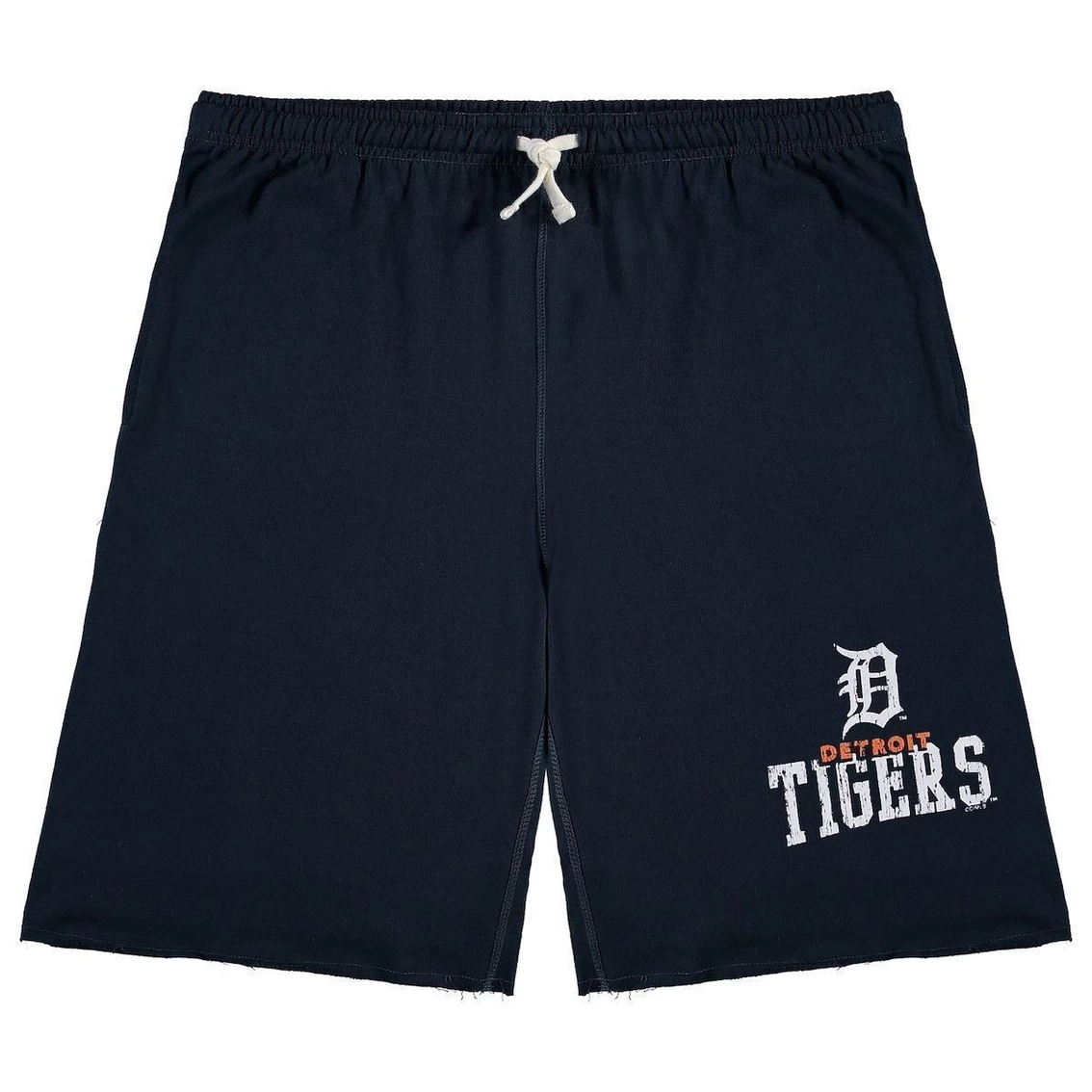 Stay comfy while hanging around the house or sleeping in these Detroit Tigers shorts. They feature soft French terry fabric and an adjustable waistband for just the right fit. Slip pockets also keep small items within easy reach when you’re wearing this comfortable pair of Detroit Tigers shorts. Flatlock stitching detailBrand: ProfileMachine wash, tumble dry lowImportedOfficially licensedMaterial: 60% Cotton/40% PolyesterTwo slip pocketsElastic waistband with drawstringInseam on size XLT measures approx. 12”Distressed screen print graphicsUnfinished hem