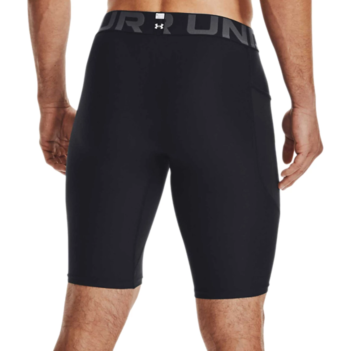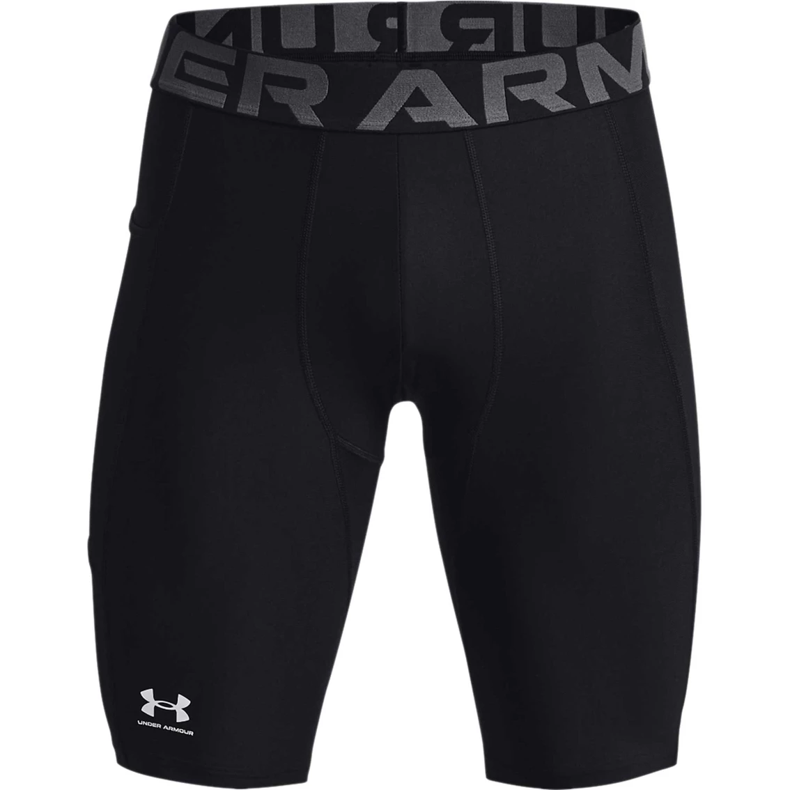 The super-light HeatGear fabric in these pocket long shorts from Under Armour deliver superior coverage without weighing you down. Strategic mesh panels for added ventilation where you need it. Material wicks sweat and dries really fast. Anti-odor technology prevents the growth of odor-causing microbes. Ergonomic design keeps seams off high abrasion areas and increases durability. Wide, exposed elastic waistband with wordmark detail. Updated gusset design provides ultimate support and comfort. Side drop-in pocket for easy storage. Inseam: 9 in. Body: 84% polyester/16% elastane. Mesh: 92% polyester/8% elastane. Style: 1361602.