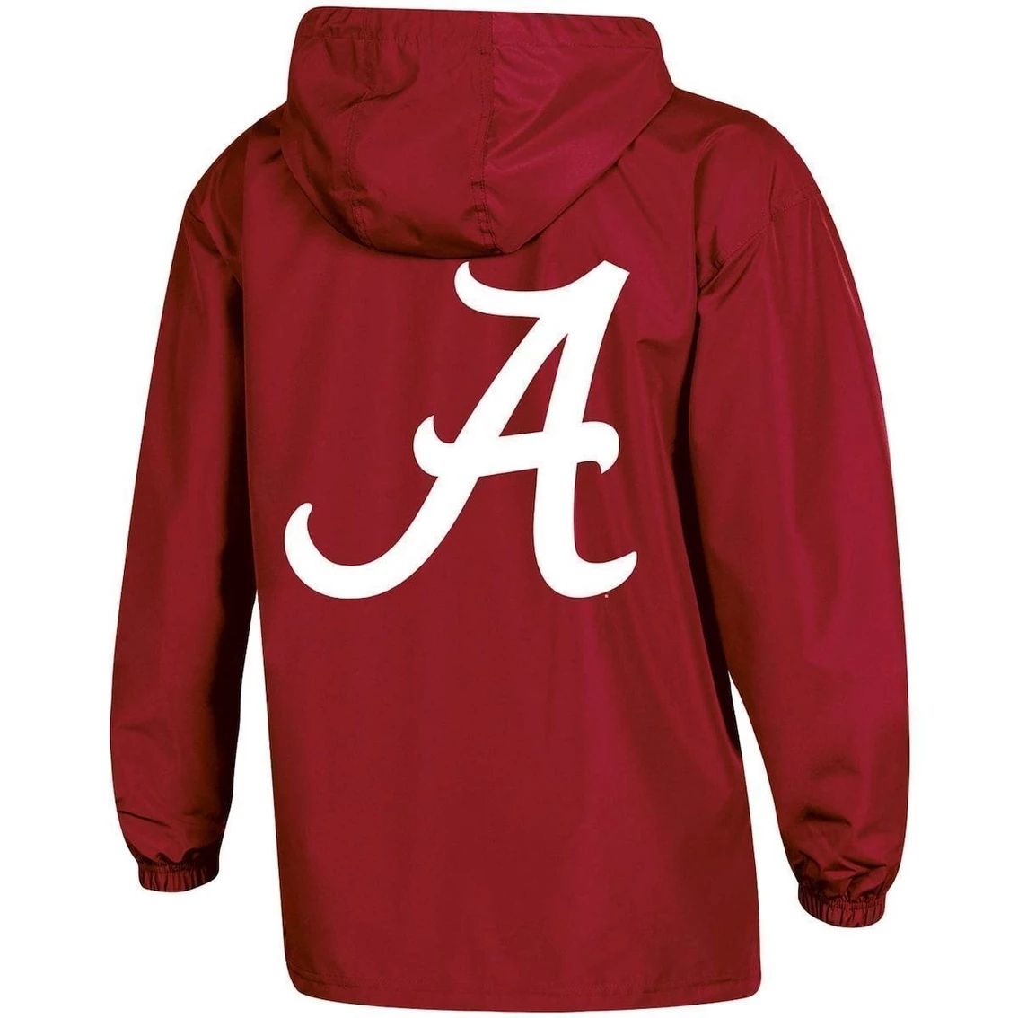 - You’re headed to the Alabama Crimson Tide game, but the forecast predicts a bit of rain. You won’t have to worry when you have this Champion Packable half-zip light rain jacket with you! With large Alabama Crimson Tide logo graphics on the back and the team name on the left chest, this jacket will keep your team spirit alive and help you stay dry on game day.