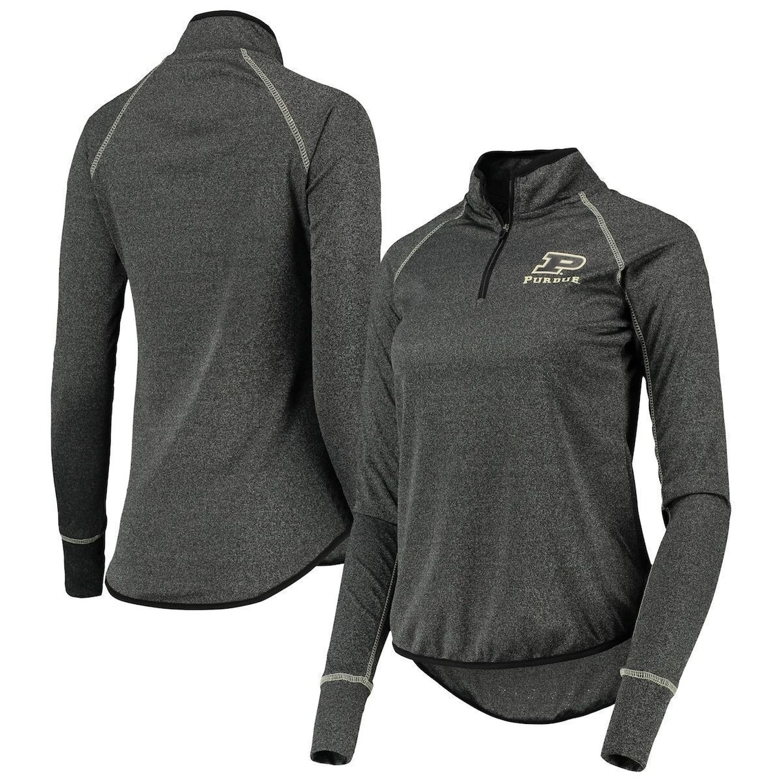 Budget 🔥 Women's Colosseum Black Purdue Boilermakers Stingray Raglan Quarter-Zip Top ⭐