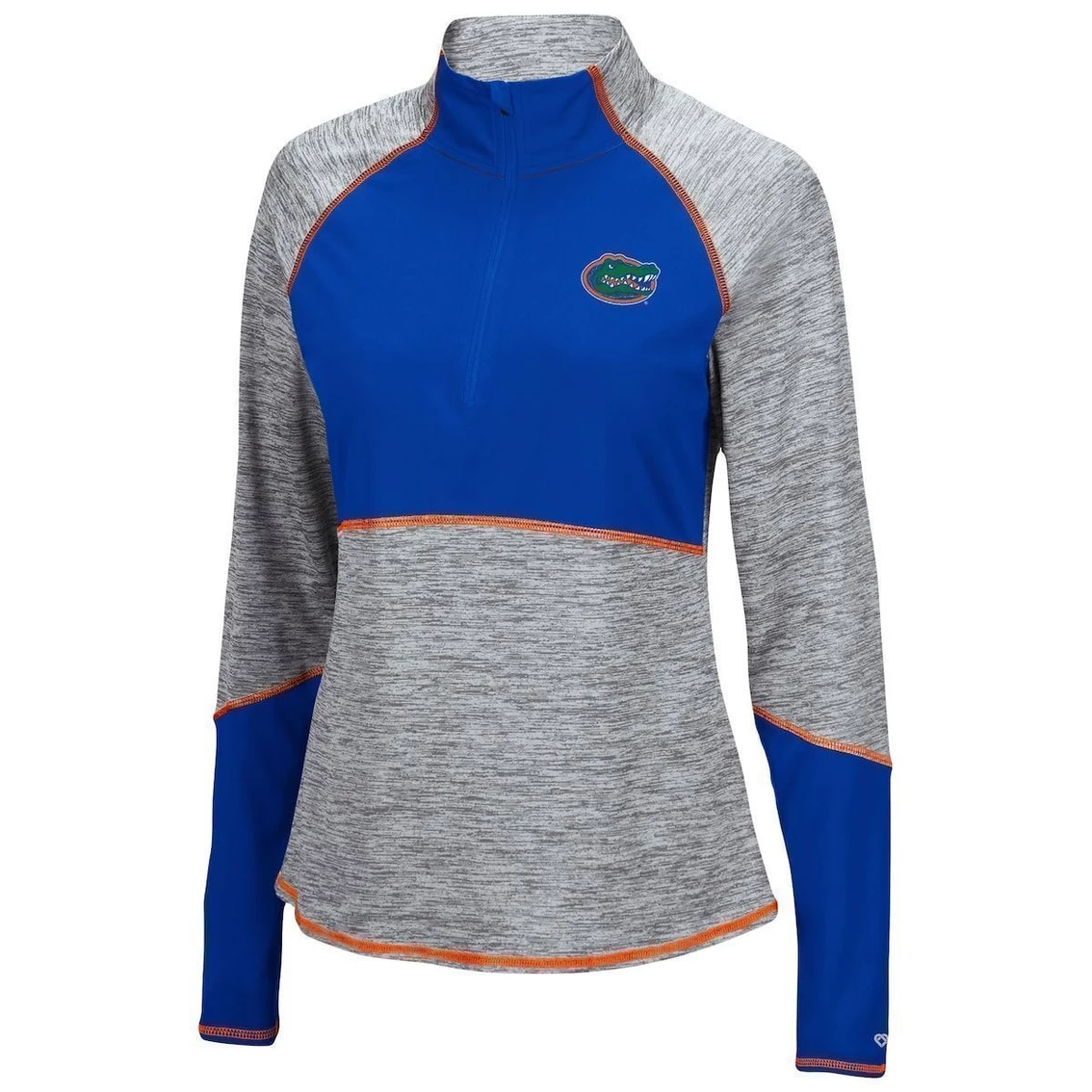 Promo π Women's Colosseum Heathered Gray/Royal Florida Gators Color Block Space-Dye Raglan Quarter-Zip Top β