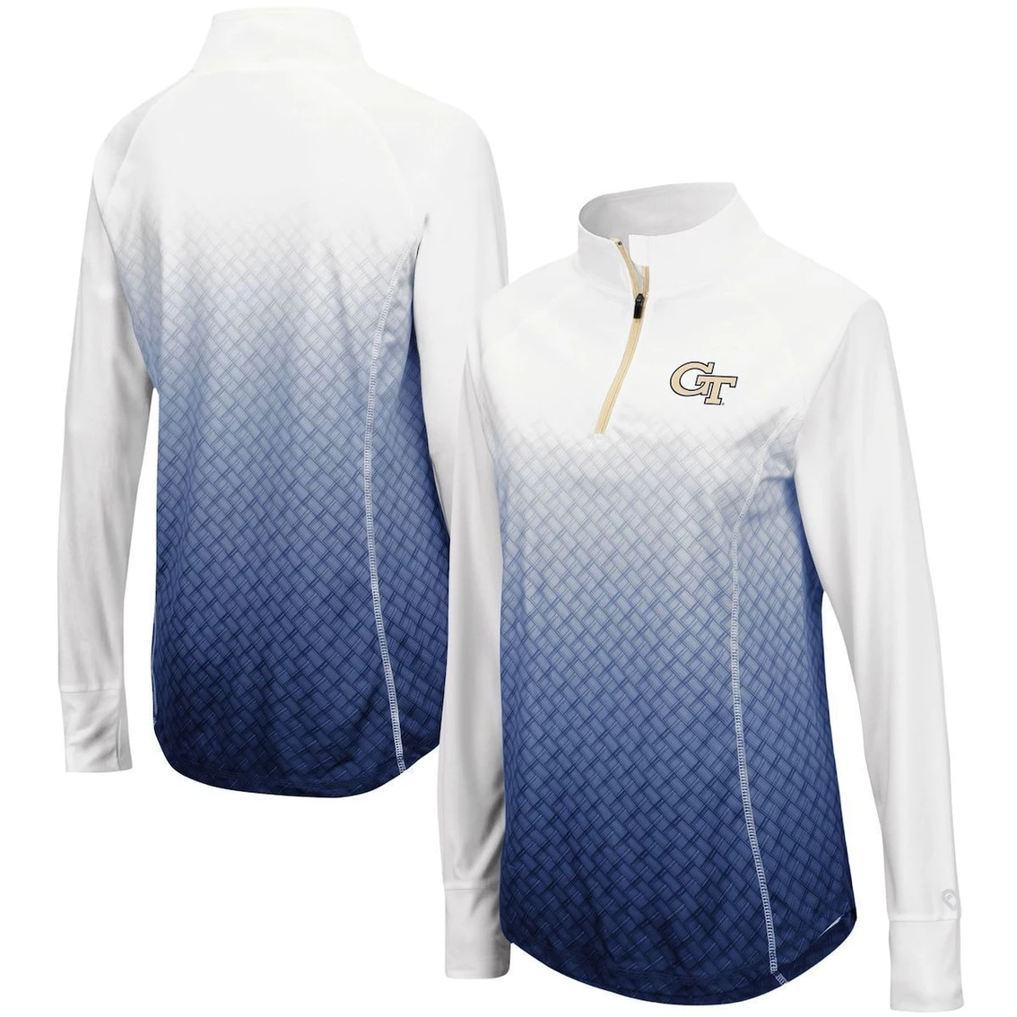 Promo β€οΈ Women's Colosseum Navy GA Tech Yellow Jackets Magic Ombre Quarter-Zip Raglan Jacket π₯°
