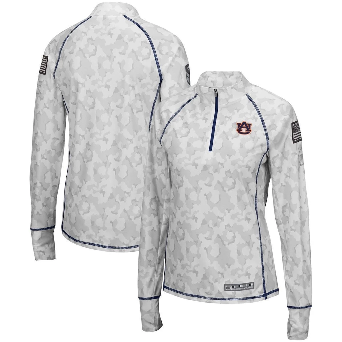 Cheap ⭐ Women's Colosseum White Auburn Tigers OHT Military Appreciation Officer Arctic Camo 1/4-Zip Jacket 🎁