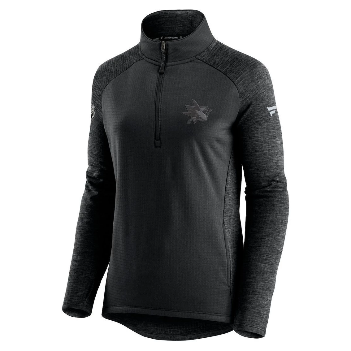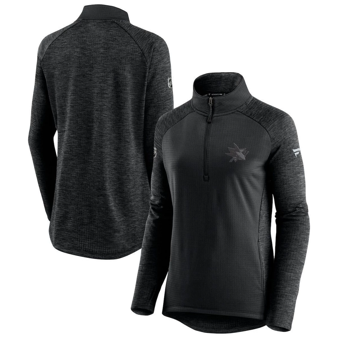 Outlet π Women's Fanatics Branded Black/Heathered Charcoal San Jose Sharks Authentic Pro Travel & Training Raglan Quarter-Zip Jacket π