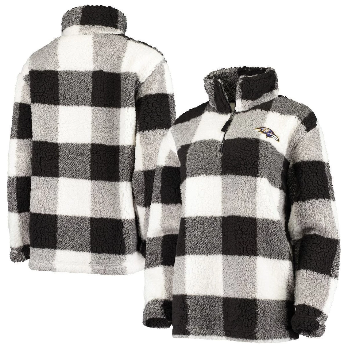 - The right outerwear can help you combat cooler temperatures in stunning fashion. Choosing this Baltimore Ravens Sherpa Plaid quarter-zip jacket from G-III 4Her by Carl Banks is a brilliant way to add some flair to your game day outfit. Its thick Sherpa fabric is sure to keep you warm, and it comes in your team’s colors. Fashion-forward Baltimore Ravens fans will appreciate the unique look of this jacket.