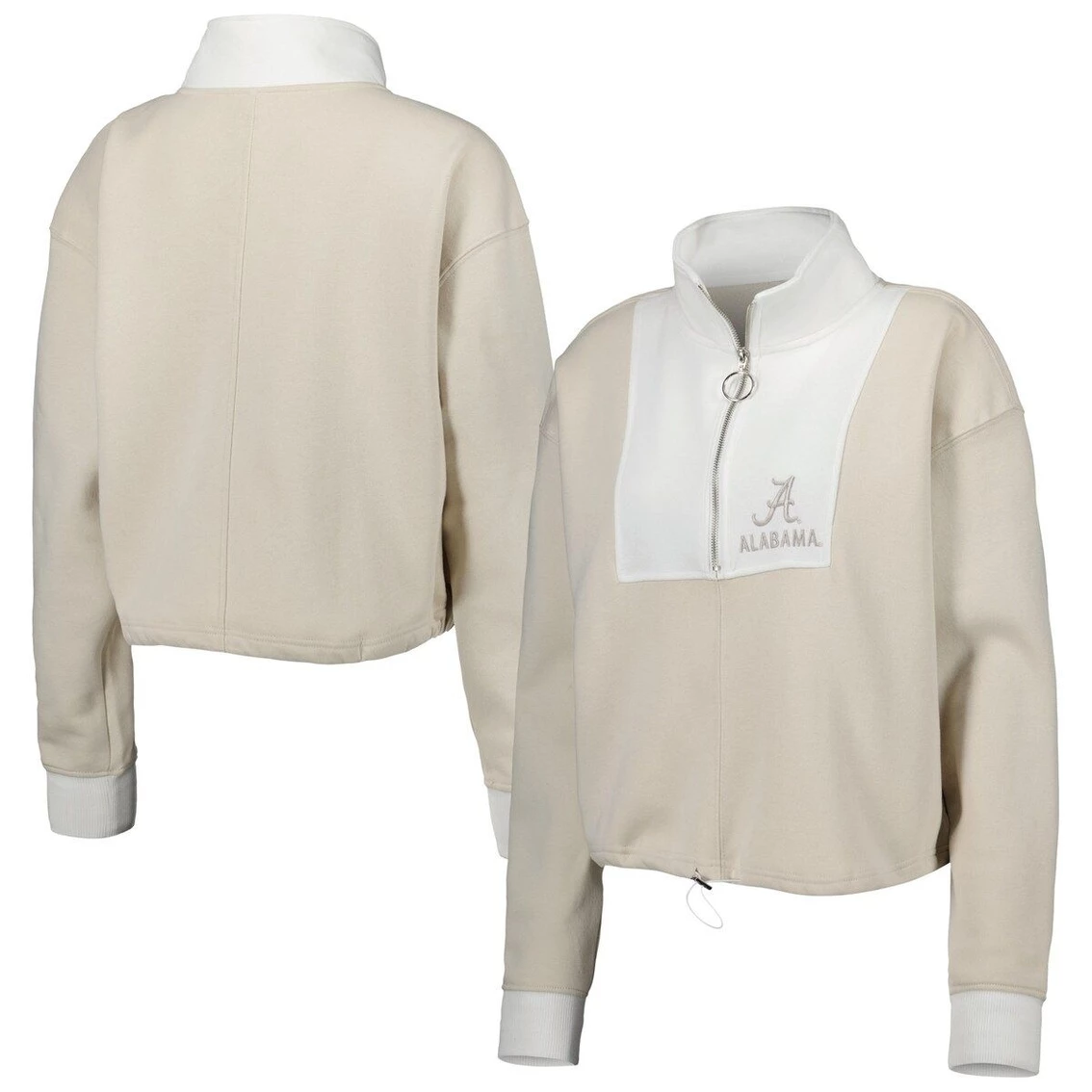 Discount 💯 Women's Gameday Couture Tan/White Alabama Crimson Tide Color-Block Quarter-Zip Jacket 💯