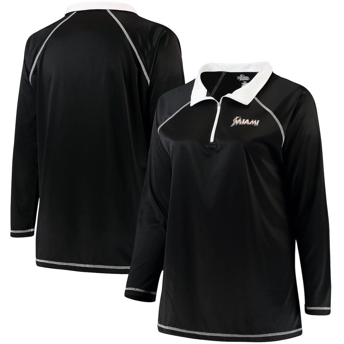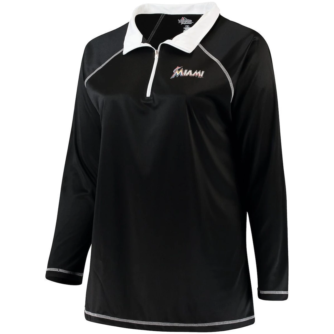 Best Pirce ✔️ Women's Majestic Black Miami Marlins Plus Size Quarter-Zip Pullover Jacket ✨