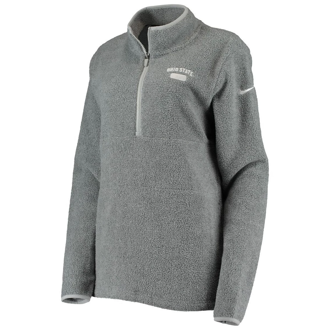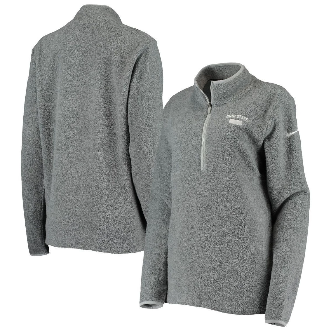 New 🔔 Women's Nike Gray Ohio State Buckeyes Teddy Bear Fleece Half-Zip Jacket 🔥