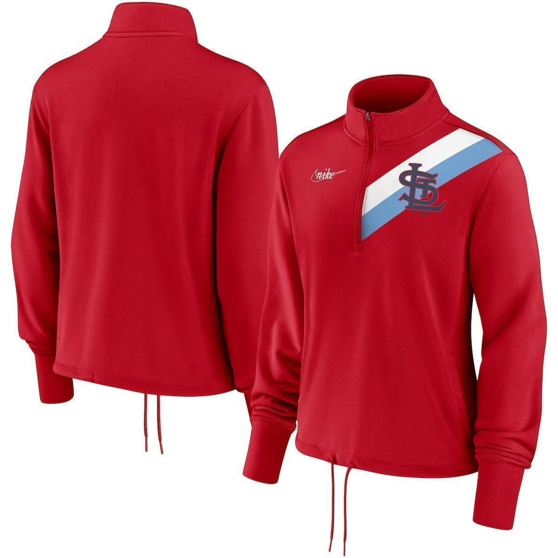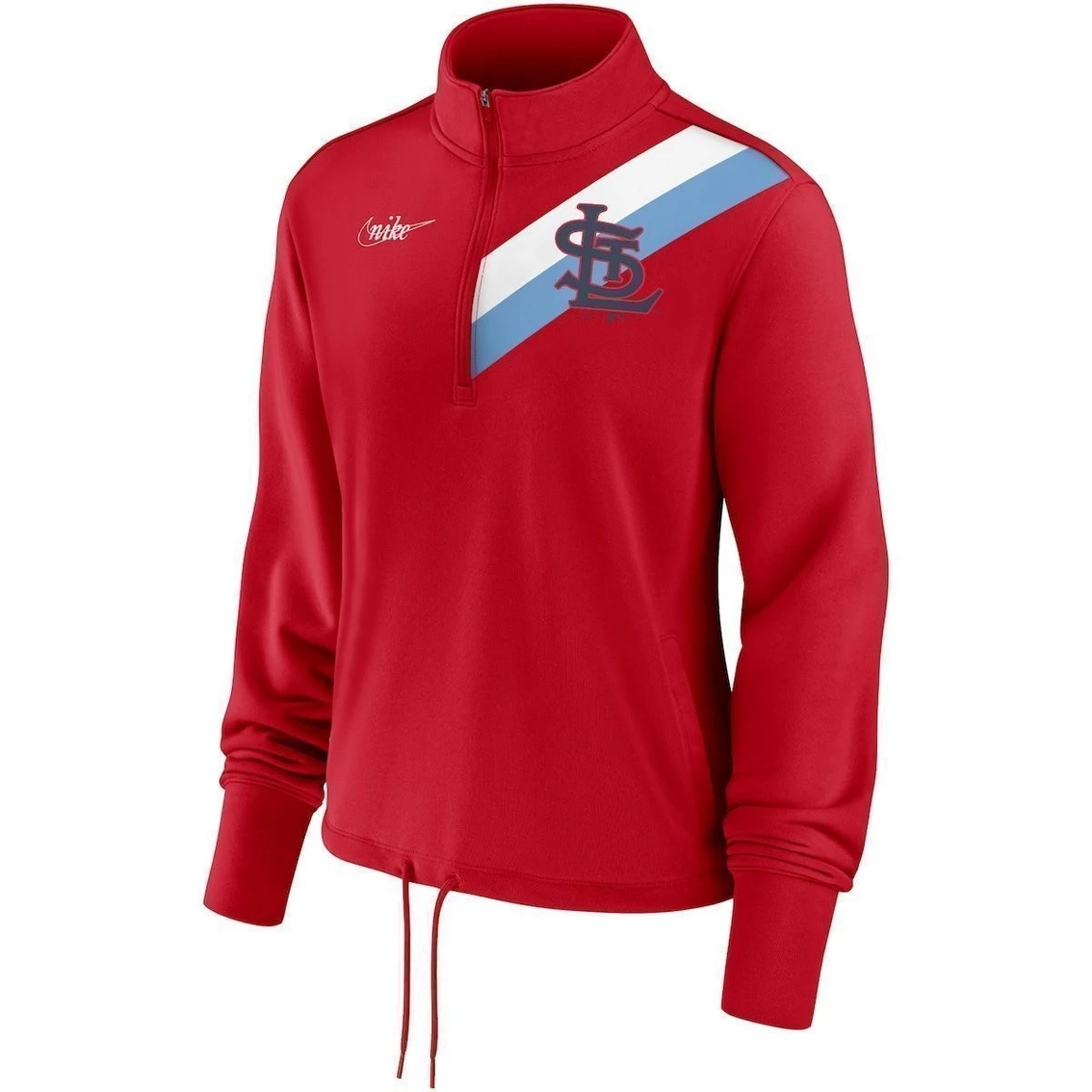 Best Pirce β€οΈ Women's Nike Red St. Louis Cardinals 1942-44 Cooperstown Collection Rewind Stripe Performance Half-Zip Pullover π