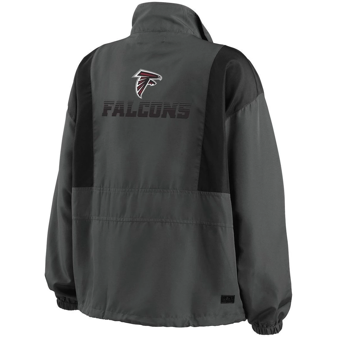 Hot Sale π Women's WEAR By Erin Andrews Charcoal Atlanta Falcons Popover Packable Half-Zip Jacket π―
